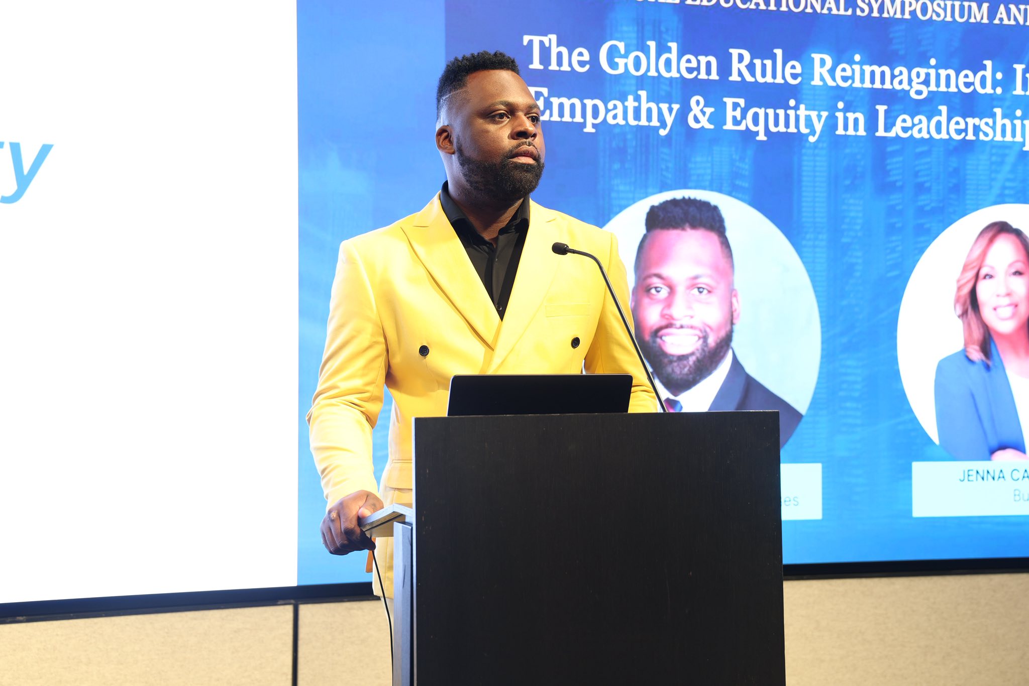 Dr. Duvalier Malone speaks at ALA New York City on “The Golden Rule Reimagined,” redefining leadership through empathy, inclusion, and equity.